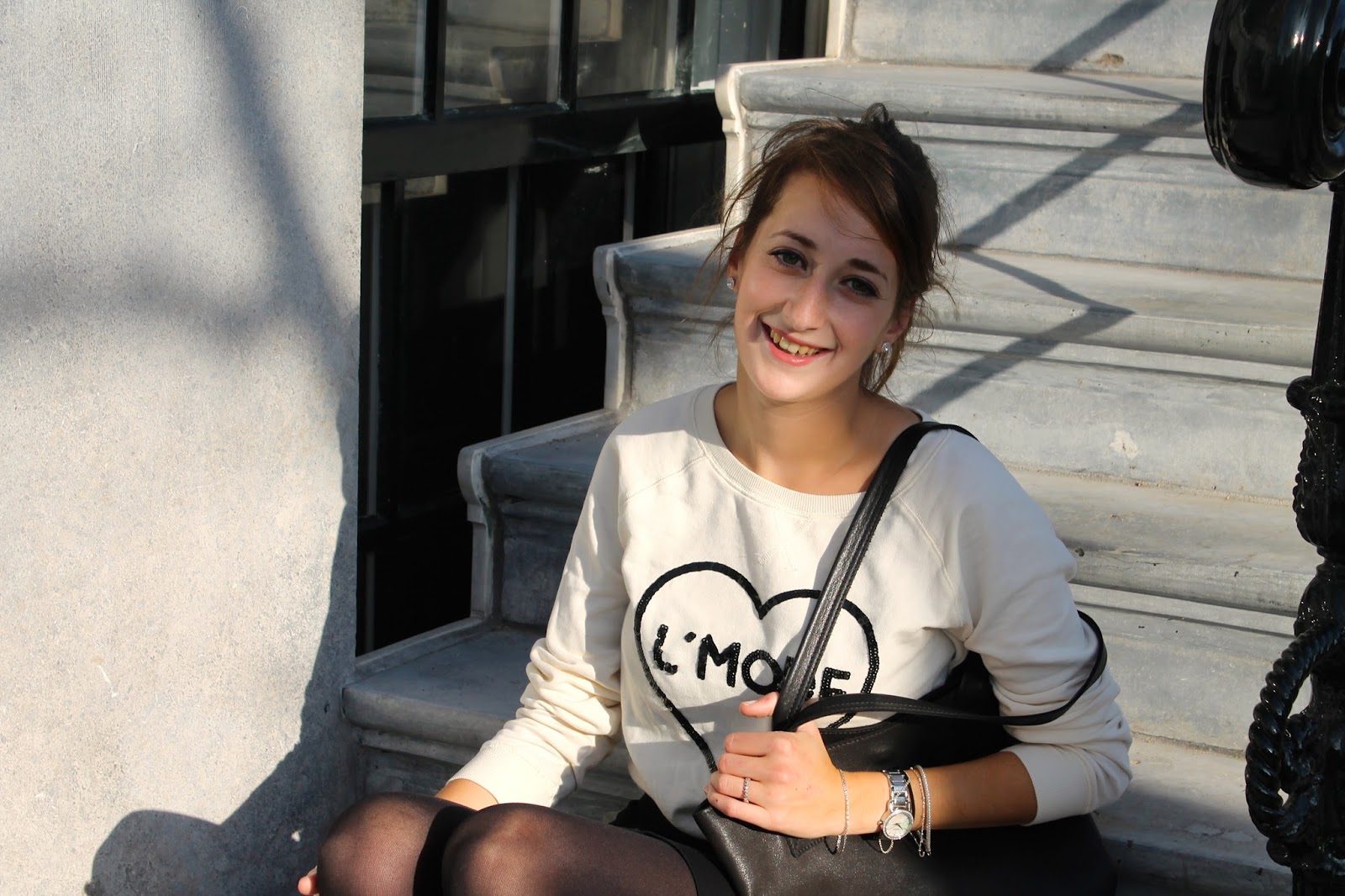 Ik vind vooral de outfit die je laatst in Amsterdam op de foto hebt gezet heel mooi. Ik vind die lichte kleur van de trui je heel mooi staan.