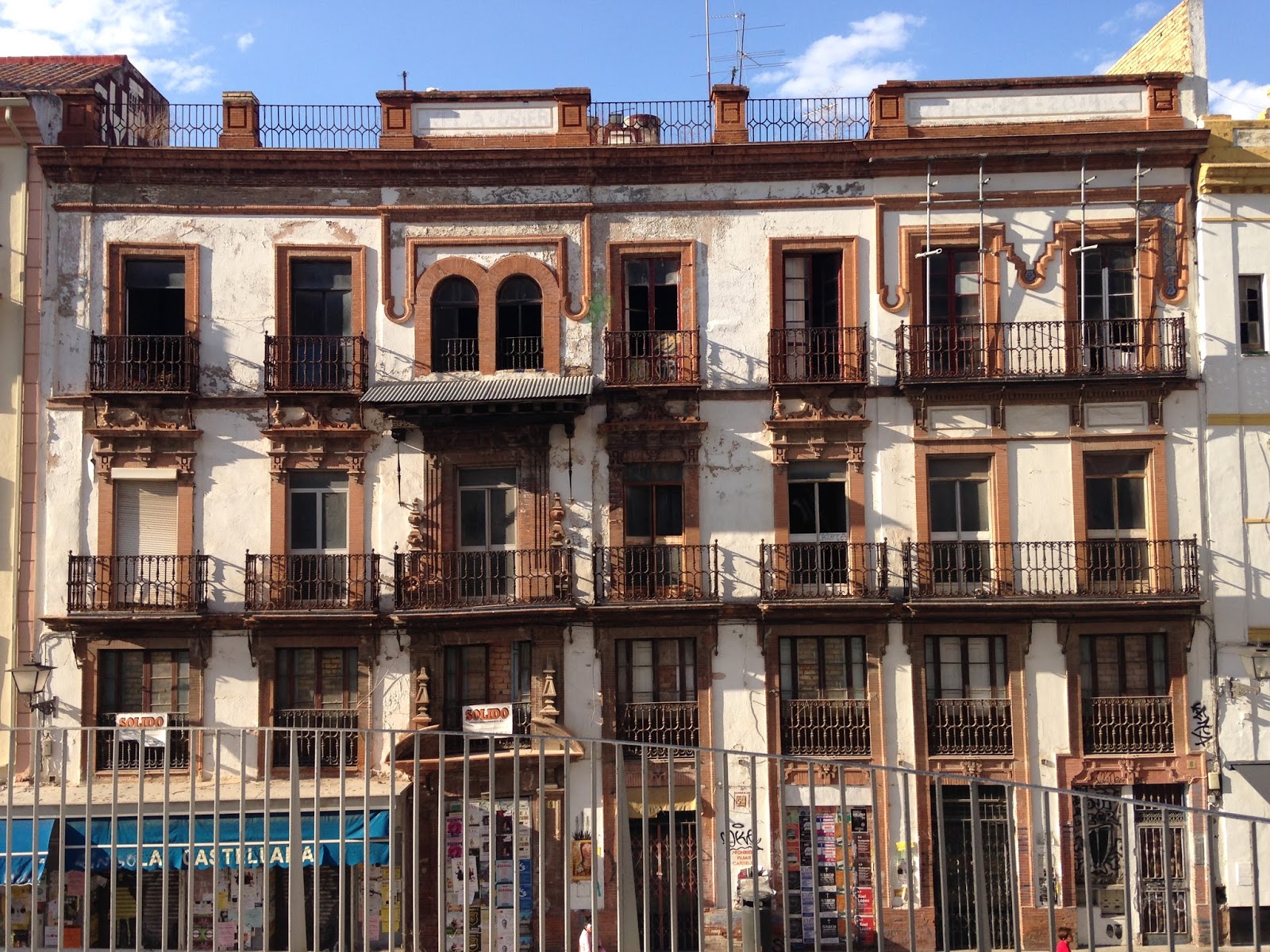 Woensdagmorgen vervolgde ik mijn reis per trein verder naar Sevilla. Ook dit was weer een hogesnelheidstrein. Het enige nadeel was dat hij deze keer erg schommelde waardoor ik misselijk werd. Ik besloot te gaan slapen en daarna voelde ik mij een stuk beter. Aangekomen in Sevilla (waar het bloed en bloed heet was) heb ik heel decadent een taxi genomen naar mijn verblijfplaats. Ik dacht dat kan best voor een keertje. Aangekomen op mijn bestemming moest ik even slikken. Het s een heel groot Erasmus (internationale studenten) studentenhuis. Het huis is groot, maar ook niet zo schoon. Het heeft wel een heel fijn dakterras en het is natuurlijk gezellig met zoveel studenten. Nadat ik mijn spullen op mijn kamer had gezet, was het tijd om Sevilla te verkennen. Ik heb rondgelopen en veel indrukken op gedaan. Het is een hele oude stad. Het is hier nog warmer, maar het voelt ook anders warm. Het is hier 34 graden en ik vind het bloody hot. De warmste plek tot nu toe. Terwijl ik een hotpants en een topje eigelijk al te warm vind, lopen Spanjaarden hier met hun skinny jeans en een t-shirt aan. Zij zullen vast de warmte gewend zijn.