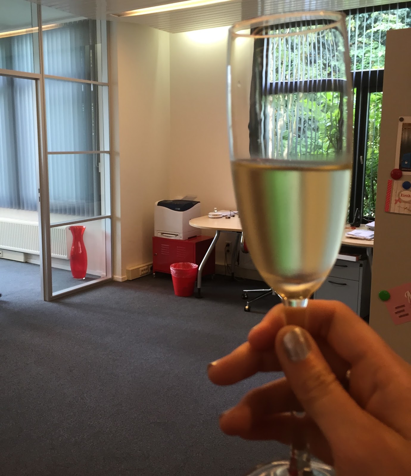Woensdag werk ik de hele dag en halen we een groot project binnen. Tijd voor champagne. Ook draag ik mijn nieuwe sterretjes broek waar ik héél blij mee ben!