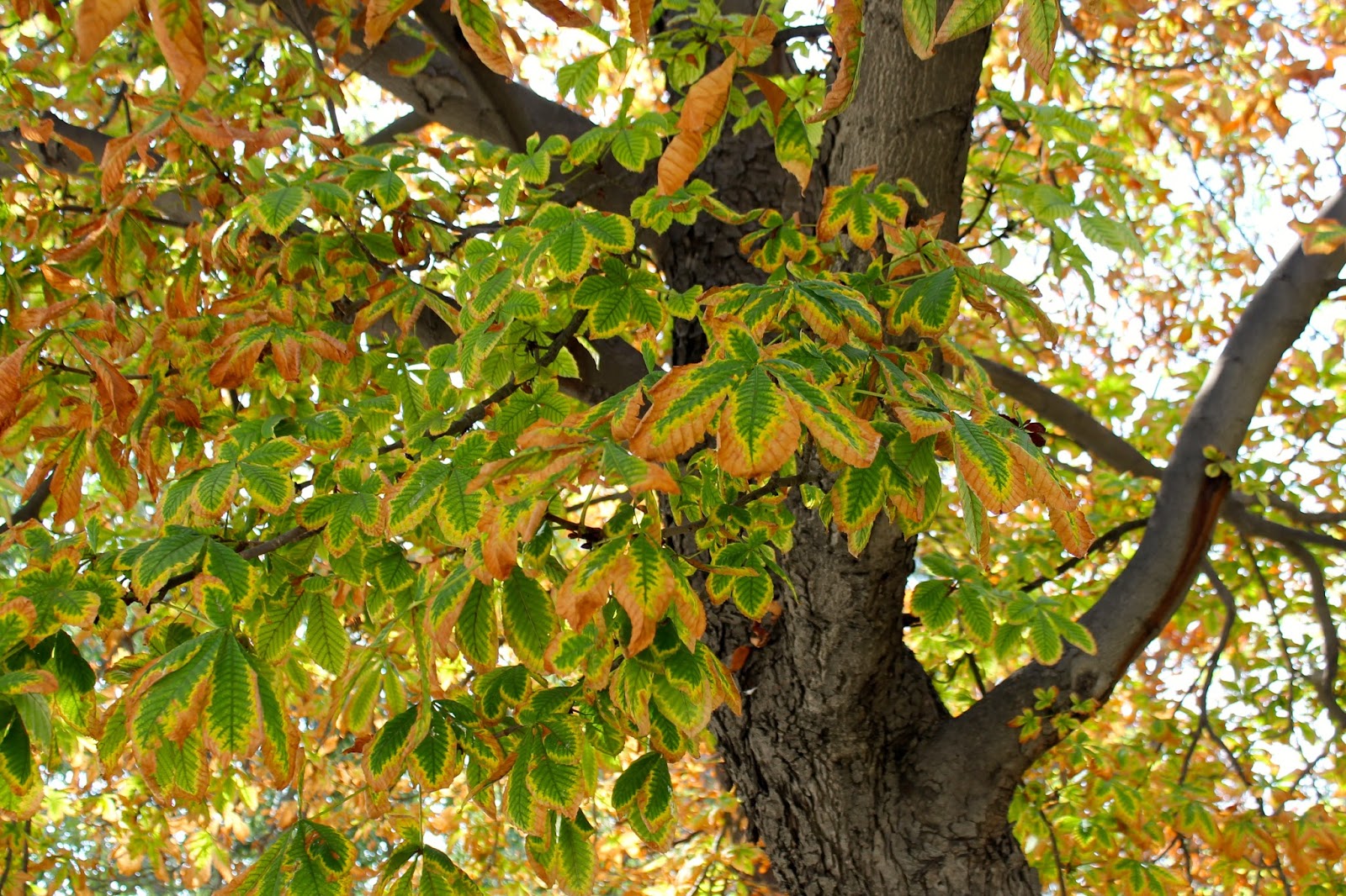 Hoewel ik niet in de gaten heb dat de herfst begonnen is, doordat ik in Spanje vertoef waar het nog steeds lekker weer is, lieten de bomen in het park toch blijken dat de herfst wel degelijk begonnen is. De bladeren begonnen te verkleuren.