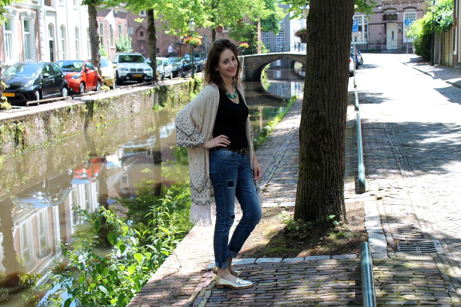 Nu ik niet meer midden in het centrum kom, mis ik dat wel soms. De binnenstad van Amersfoort is zo mooi en heeft zoveel mooie oude karakteristieke gebouwen en natuurlijk de grachten. Nu is het extra genieten als ik er weer een keertje ben! Daarnaast zijn outfit foto’s aan de grachten stiekem ook een beetje mooier. Ik draag trouwens mijn nieuwe loafers die ik onlangs online bestelde. Ze zitten heerlijk en kan niet wachten om ze nog veel vaker te dragen. Ook draag ik mijn nieuwe kimono van Shoeby. Hoewel ik hem eerst een beetje saai vond, kun je hem makkelijk combineren tot een leuke outfit. Voorheen shopte ik niet zo vaak shopte bij Shoeby, maar ik kom er steeds vaker. Zeker de zomercollectie is niet verkeerd!
