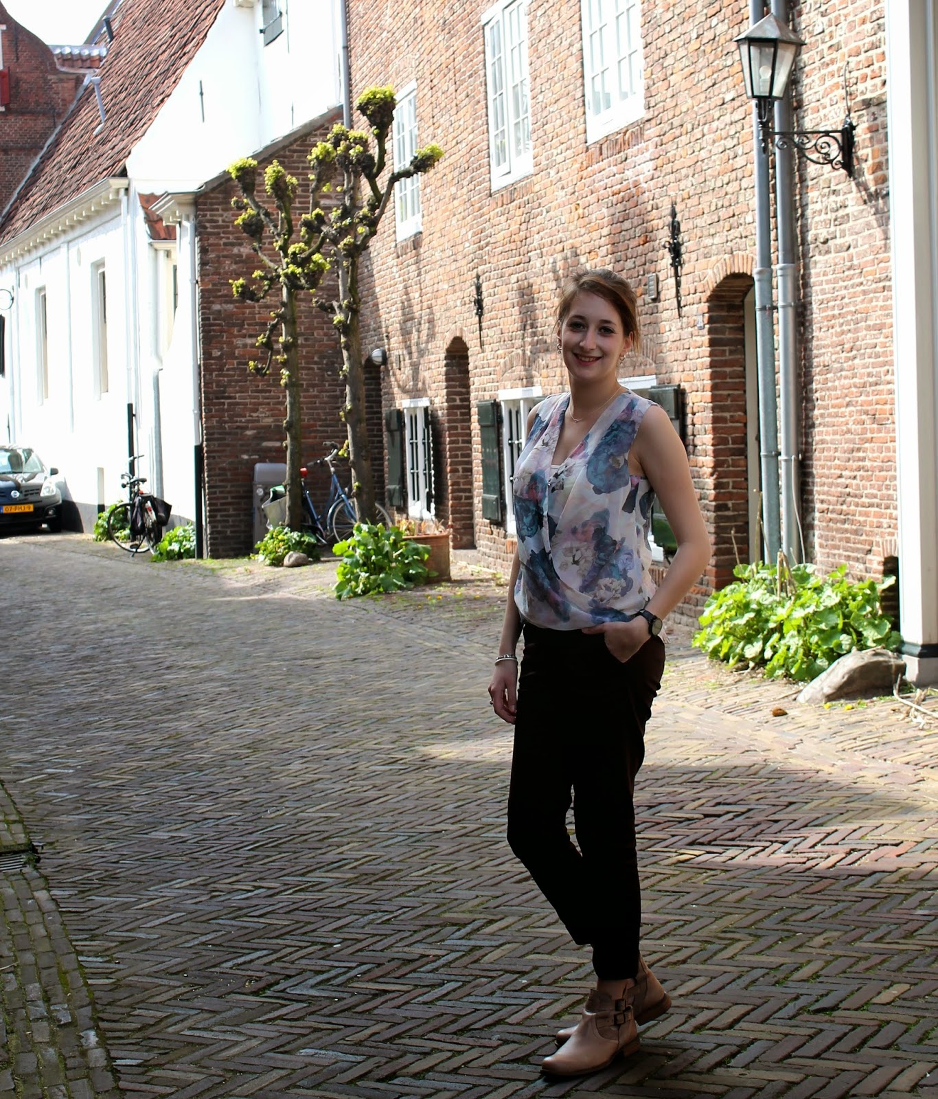 Ik kocht hem bij de H&M, maar ik vind dat de top wat chiquer oogt. Ik combineerde deze top met een pantalon broek van de Mango. Ik ben steeds meer aan het experimenteren met andere broeken dan jeans broeken. Jeans vind ik nog steeds leuk, maar ik vind het leuk om af te wisselen.