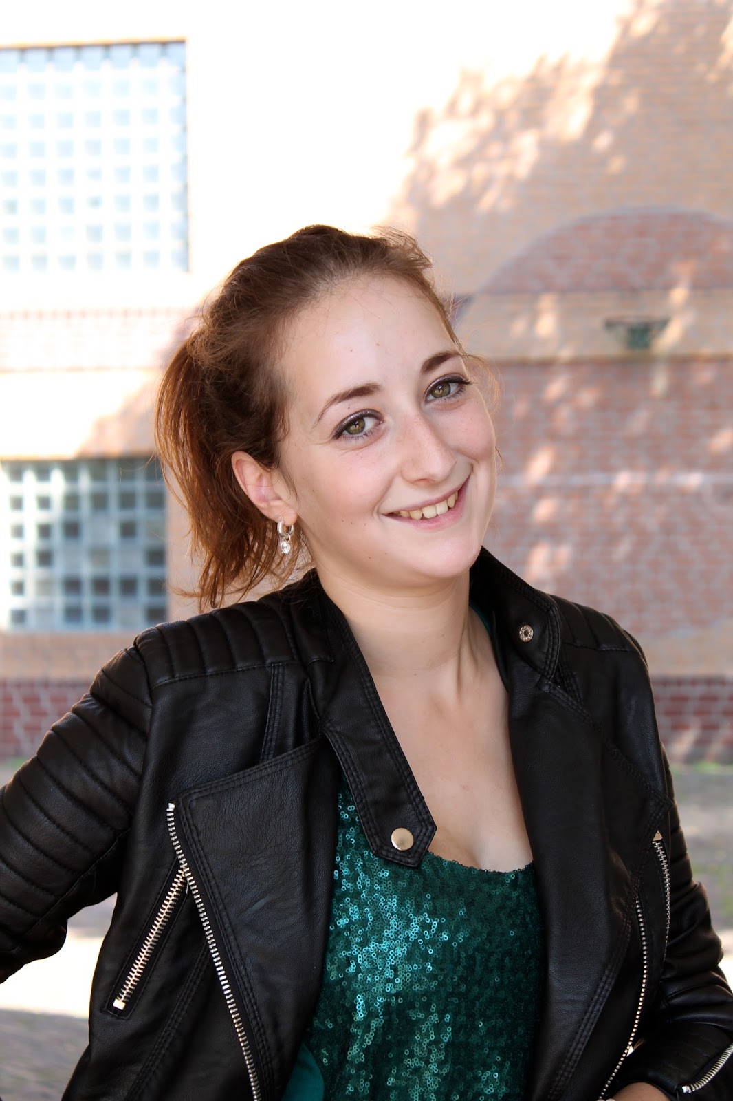 Vlak voor ik op vakantie ging, maakte ik nog een keertje outfit foto’s met Fleur. Hoewel het eigenlijk een hele simpele outfit is, vind ik de outfit op de foto’s erg leuk overkomen. Ik heb mijn nieuwe nep leren jasje uit de kast getrokken en mijn groene pailletten top.