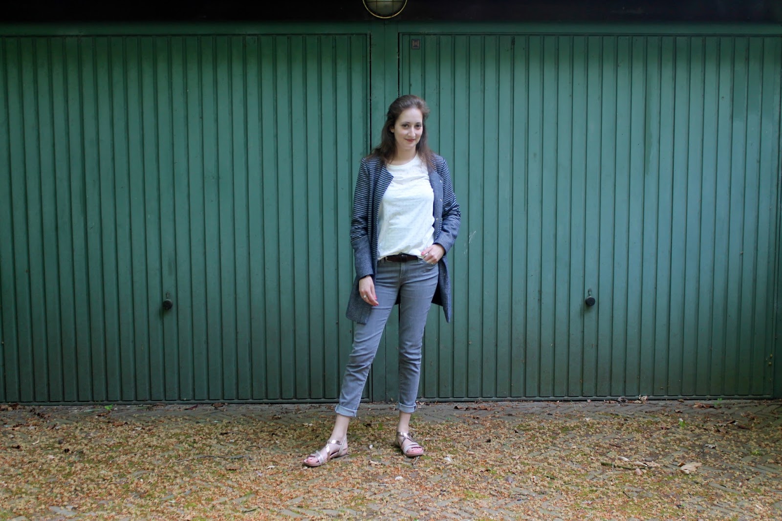 Wat een leuke sandalen! Echt heel leuk en ze staan je ook goed. Vind je jas ook heel tof! Een vriendin van mij heeft 'm in het grijs volgens mij, ook tof hihi. Leuke outfit! Hopelijk kan je je aandelen lekker veel aan deze zomer. 🙂