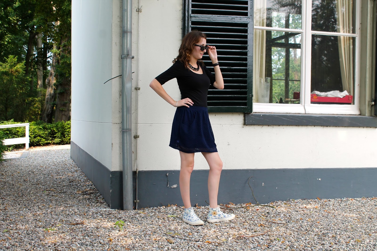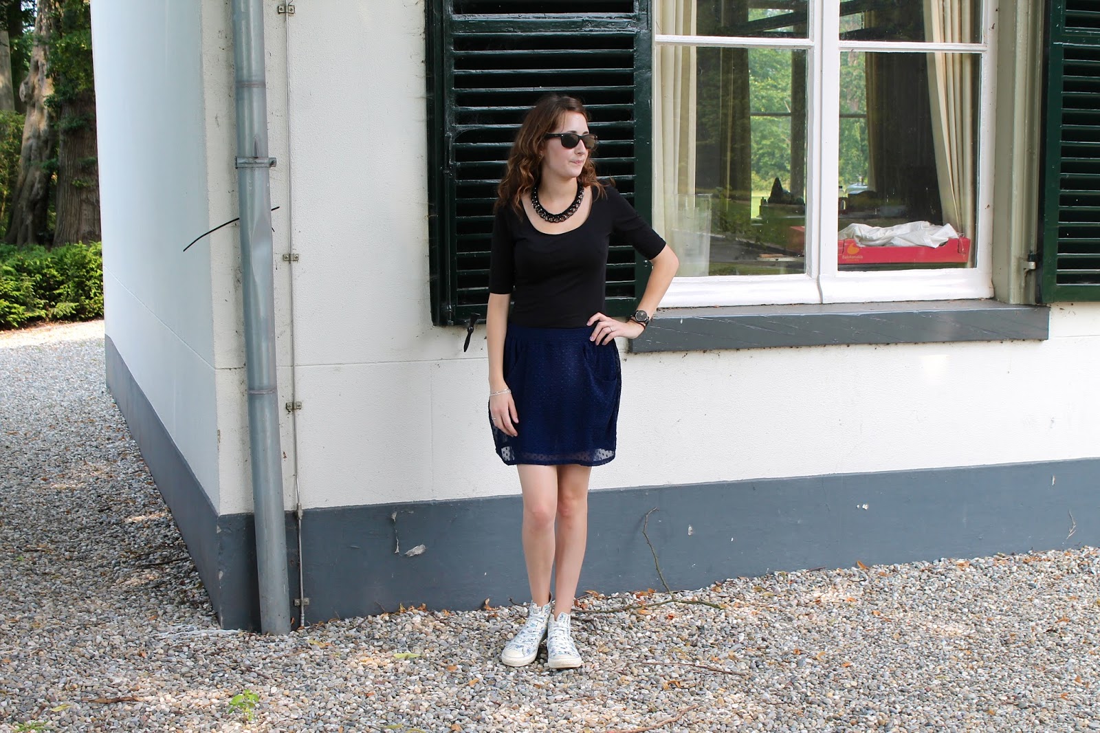 | Top: H&M Ketting: Pieces Rok: Men at Work Schoenen: All Stars |