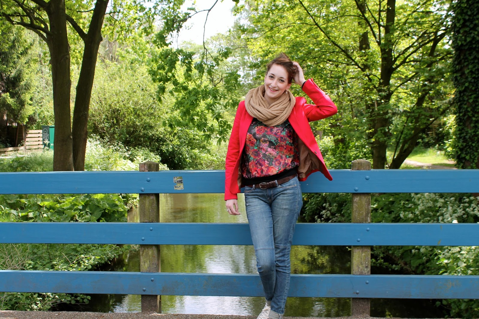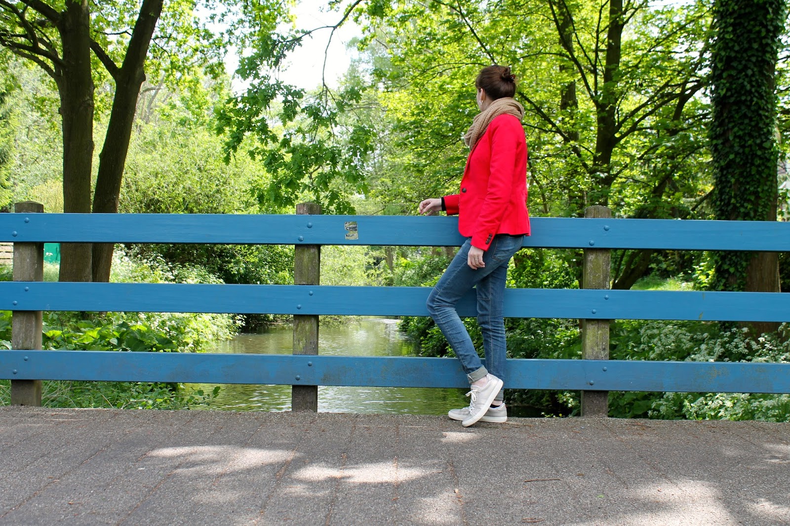 Ik draag mijn mooie rode jasje van de Mango. Ik heb dit jasje al een hele tijd, maar hij heeft een tijdje in de kledingkast op mijn oude kamer bij mijn ouders gehangen. Aangezien ik niet meer zo vaak bij mijn ouders ben, heb ik hem een tijd niet gedragen. Nu ik hem weer meegenomen heb, ben ik er maar al te blij mee. Ik vind hem erg mooi! Het is een chic jasje, maar je kunt hem ook casual combineren. Stiekem vind ik het ook heel tof dat hij zo’n mooi knal kleurtje heeft.