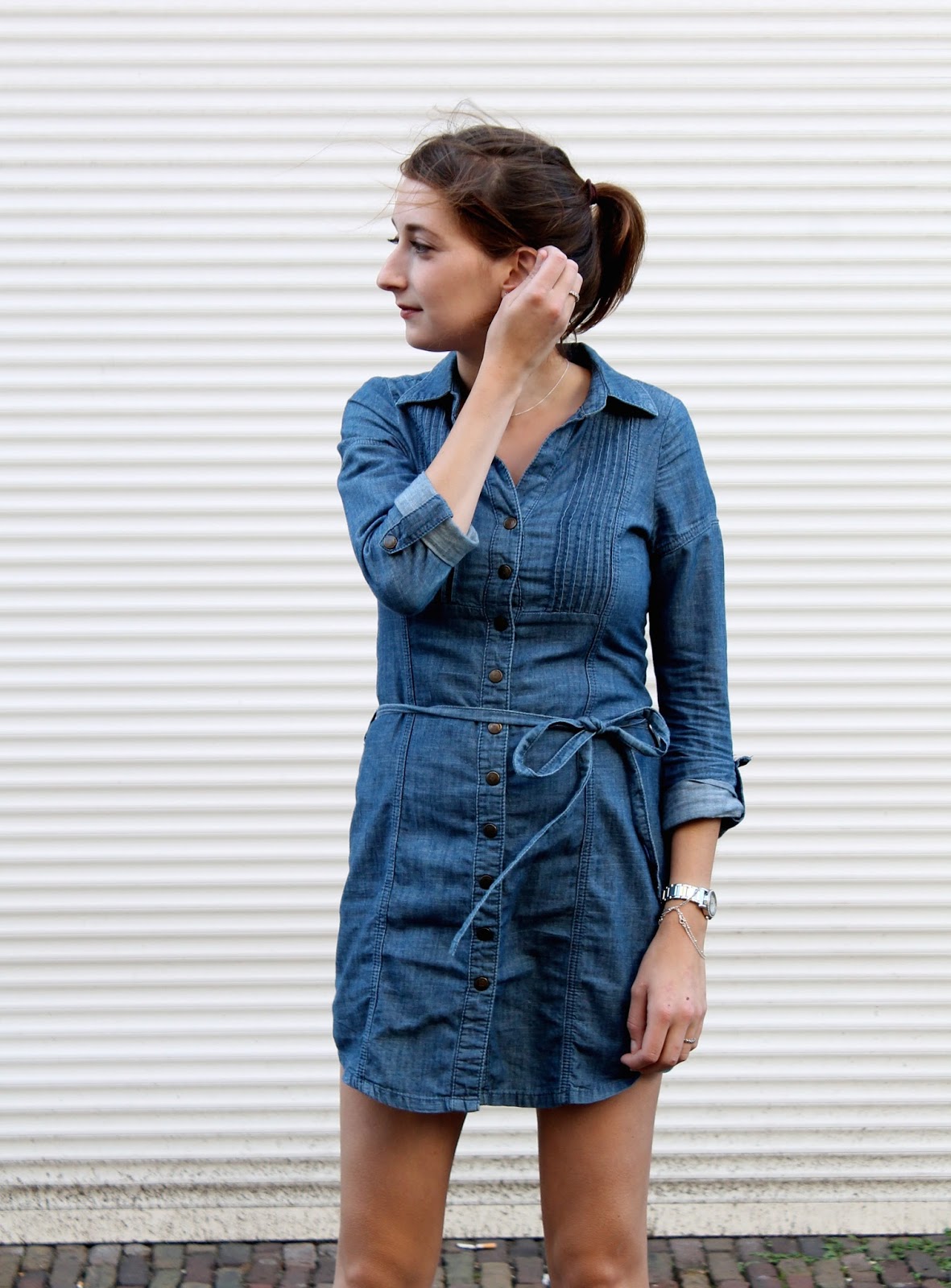 Geloof het of niet, dit jurkje is een van de weinige items die het langer dan 5 jaar vol houd in mijn kledingkast. Niet zo zeer, omdat de kledingstukken stuk gaan. Nee. Maar omdat ik uitgekeken ben of dat ik het simpelweg niet meer mooi vind. Alleen bij dit jeans jurkje is het anders. Op een of andere manier blijft het mijn favoriet. Misschien omdat jeans tijdeloos is? Ik weet het niet. Een ding is zeker. Hij behoort tot mijn favorieten, al heel lang.