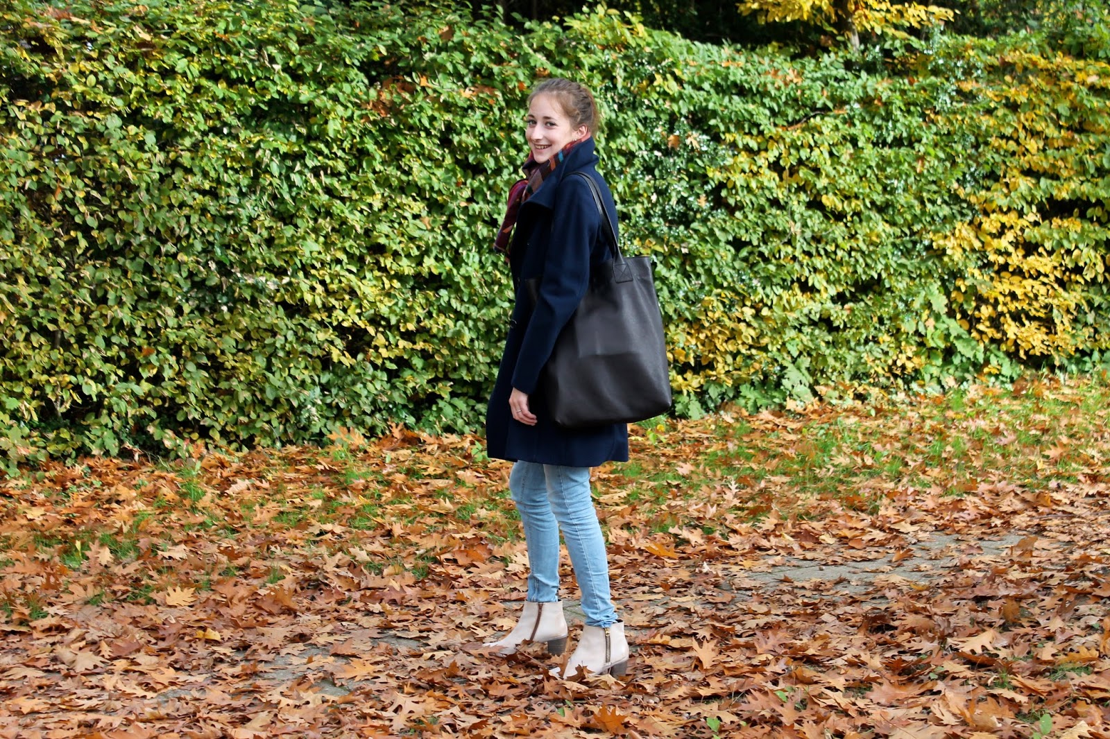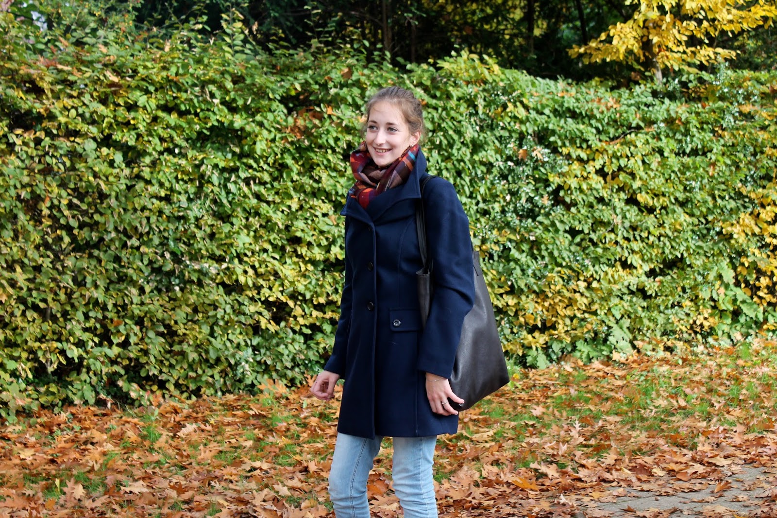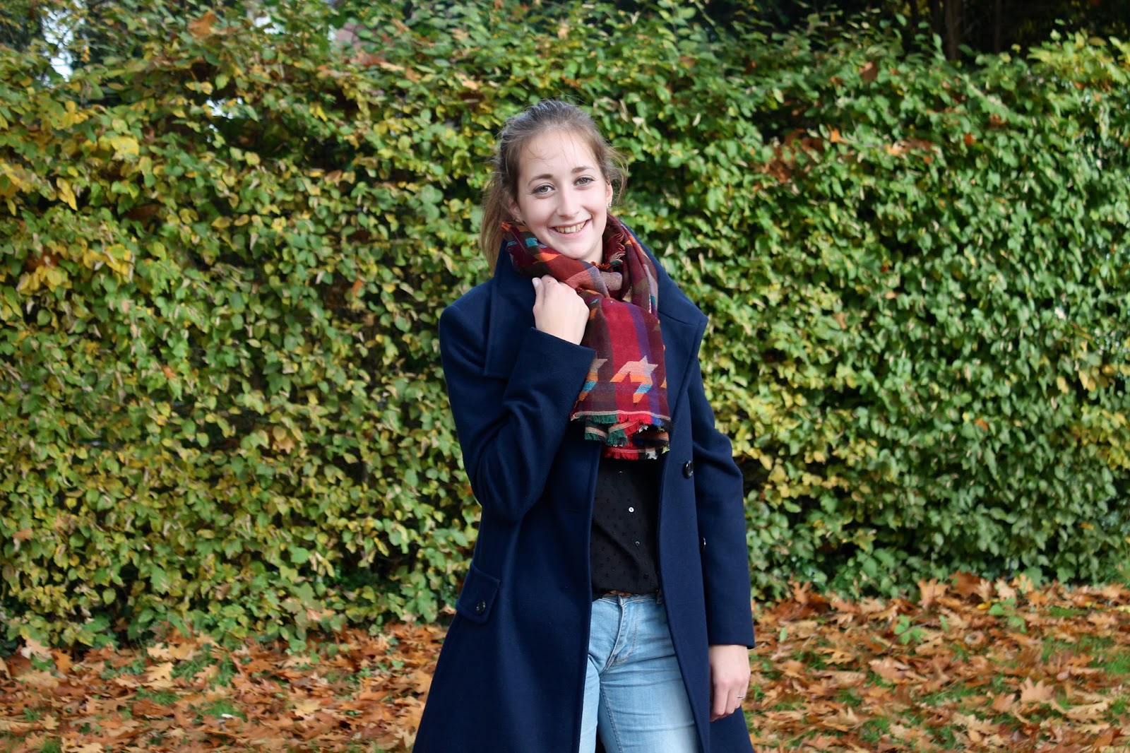 Jas: Benneton Sjaal: Easy Wear Top: Vero Moda Jeans: Supertrash Schoenen: SPM Tas: SPRDLX |