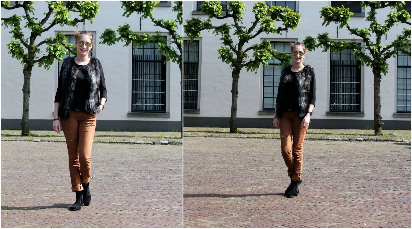Een paar weken geleden maakte ik deze outfit foto’s op een parkeerplaats in het centrum van Amersfoort. Ik draag mijn nieuwe broek die ik voor een tientje op de kop heb getikt bij een winkel in Amersfoort die failliet is. Ik vind het altijd zó leuk om een mooie items voor een klein prijsje te vinden. Ik maak er altijd een sport van.