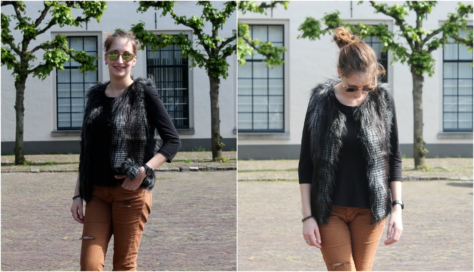 Fluffy coat: Geisha Top: H&M Broek: The Factory Schoenen: H&M Zonnenbril: Polette |