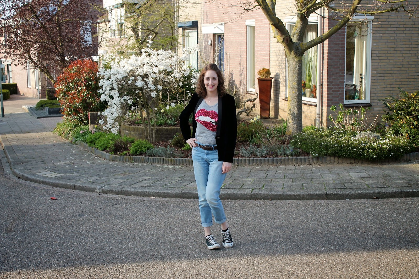 Deze outfit foto’s zijn al ruim een maand geleden geleden gemaakt door mijn schoonzusje. Door mijn scriptie zijn ze even blijven liggen, maar nu staan ze dan toch eindelijk online. Ik draag mijn favoriete ‘lips’ t-shirt van de H&M en mijn fijne boyfriend jeans ook van de H&M.